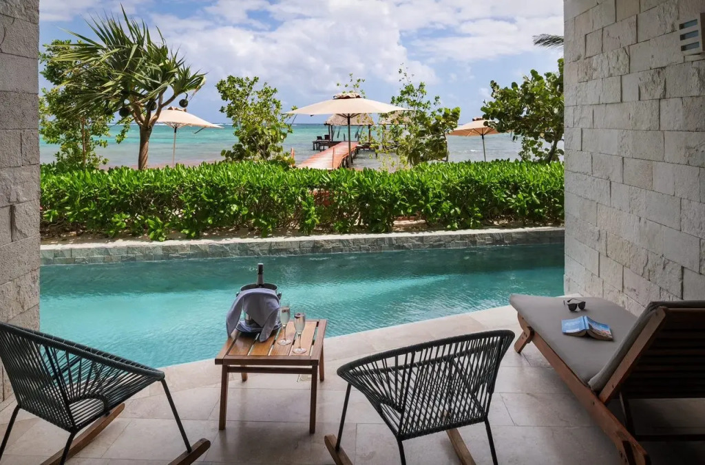 Highlights: • Swim-Up Zimmer direkt zugänglich • Boho Eleganz und Komfort • Bequeme Rückzugsorte mit Stil