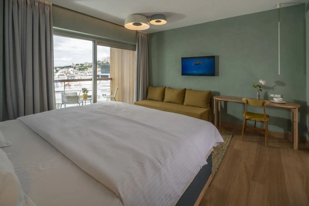 Die Zimmer des COCO-MAT Athens BC sind eine Oase der Ruhe und Erholung. Jedes Detail ist darauf abgestimmt, dir das Gefühl von Zuhause zu geben. Hochwertige Materialien, sanfte Farbpalette und kluge Raumaufteilung schaffen pure Harmonie. Viele Zimmer bieten atemberaubende Ausblicke auf die Stadt oder die Akropolis. Perfekt zum Entspannen nach einem Tag voller Erkundungen. Hier wirst du von den Geräuschen der Stadt abgeschirmt und kannst einfach loslassen.