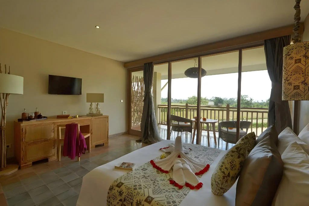 Gemütlich, funktional und mit warmen Erdtönen gehalten. Die Zimmer reflektieren die Gelassenheit Balis, ohne überladen zu sein. Ein Rückzugsort, der Ruhe bietet, mit besonders viel Raum für persönliche Momente. Vom Fenster aus kannst du die üppige Natur erleben, die das Hotel umgibt.