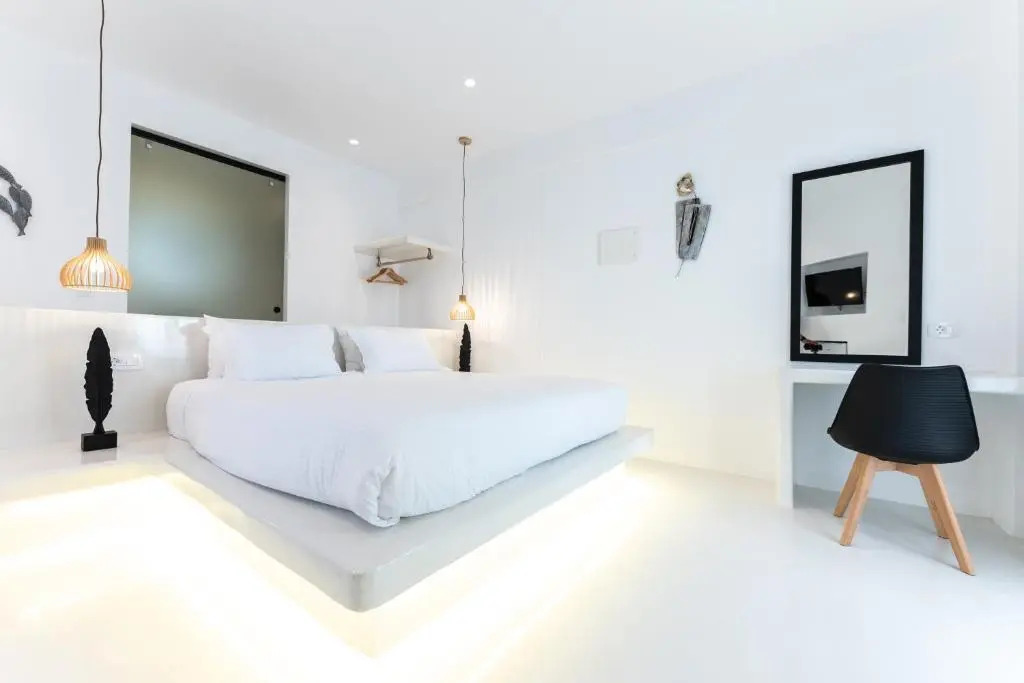 Die Suiten bieten viel Raum und Licht, was den boho-inspirierten Look perfekt in Szene setzt. Einige Suiten verfügen über atemberaubende Meerblicke, die deinen Morgen besonders machen. Das Design ist ohne Schnörkel, aber luxuriös, und lädt dazu ein, den Augenblick zu genießen. Hier kannst du dich fallen lassen und einfach genießen.