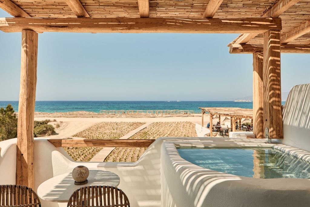 Die Zimmer im Naxian On The Beach zeichnen sich durch ein entspanntes, boho-inspiriertes Design aus. Weiche Textilien, helle Hölzer und ein Hauch von Mediterranem Flair sorgen für pure Entspannung. Viele Zimmer bieten dir einen herrlichen Blick auf das Meer und verfügen über großzügige Terrassen – ein Rückzugsort, der Privatsphäre und Komfort perfekt vereint.
