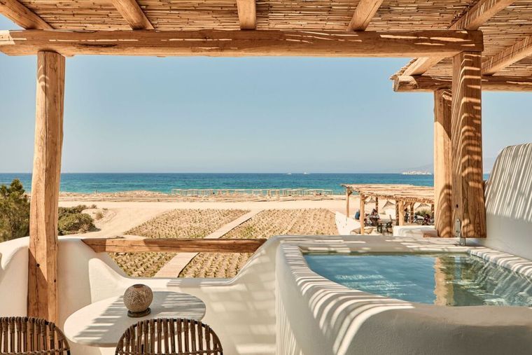 Das Naxian On The Beach liegt direkt am feinen Sandstrand von Plaka auf der griechischen Insel Naxos. Hier findest du Ruhe und Gelassenheit inmitten der Natur. Sonnenuntergänge, Meeresrauschen und die sanfte Brise des Ägäischen Meers werden zu deinen täglichen Begleitern. Ein idealer Rückzugsort auf einer authentischen Insel, die dich mit ihrer Ursprünglichkeit und ihrem Charme empfängt.