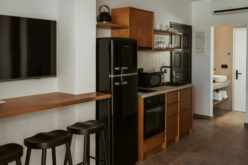 Die Villen sind der Inbegriff bohemian Chic: hell, geräumig und stilvoll eingerichtet. Jede Villa bietet viel Privatsphäre, ideal für Familien oder Paare, die Ruhe suchen. Die Veranden laden zu langen Abenden mit Blick auf den Sternenhimmel ein. Das Design ist modern und komfortabel zugleich, mit einem Hauch von griechischem Charme.