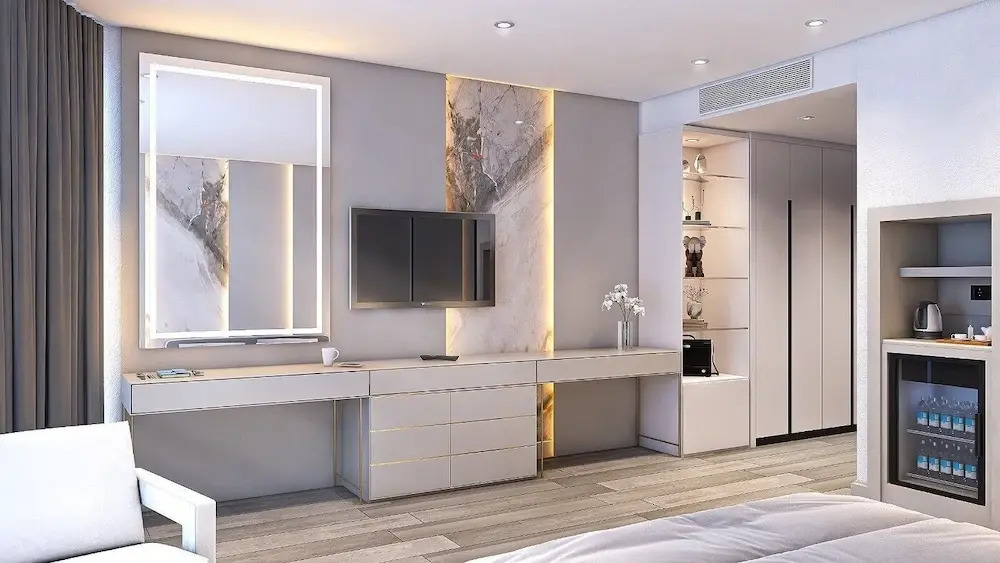 Die Zimmer des Qlusive Hotels sind ein echtes Highlight. Hell, geräumig und mit einem klaren, modernen Design, das durch warme, natürliche Elemente ergänzt wird. Viele bieten dir direkten Zugang zu den Swim-Up-Pools, wo du morgens ins Wasser tauchen kannst, ohne das Zimmer zu verlassen. Alles ist darauf ausgelegt, dir Ruhe und Erholung zu schenken - von der feinen Bettwäsche bis hin zu den eleganten Badezimmern, die deine persönliche Wohlfühloase darstellen.