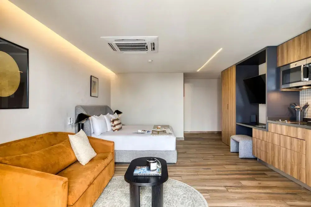 Die Zimmer sind stilvoll eingerichtet, mit einem Fokus auf Komfort und Klasse. Warme Farben und natürliche Materialien schaffen ein Wohlfühlambiente, das zum Verweilen einlädt. Genießen Sie viel Licht und geschmackvolle Details, die jedes Zimmer zu einer kleinen Oase machen. Perfekt, um nach einem aufregenden Tag in Mexiko City zur Ruhe zu kommen.