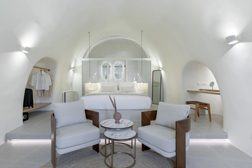 Jedes Zimmer ist ein Unikat und bietet das, was du von einem Boho-Luxus-Hotel erwartest: Eleganz, Komfort und viel Raum zum Durchatmen. Mit Privatpools und Terrassen hast du deinen eigenen kleinen Rückzugsort, perfekt für romantische Tage. Der Ausblick auf die Ägäis ist spektakulär und der Design-Mix aus warmen Tönen und klaren Linien sorgt dafür, dass du dich sofort zuhause fühlst.