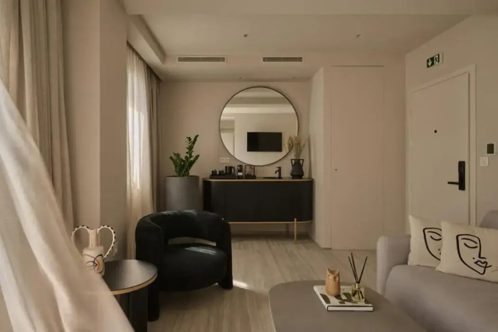 Die Zimmer im Vision Omonia sind stilvoll und komfortabel eingerichtet, mit viel Liebe zum Detail. Warme Töne und natürliche Materialien schaffen eine einladende Atmosphäre. Einige Zimmer bieten sogar einen beeindruckenden Blick über die Stadt. Hier beginnt dein Tag entspannt und du schläfst ruhig ein, weit entfernt vom Trubel der Stadt.